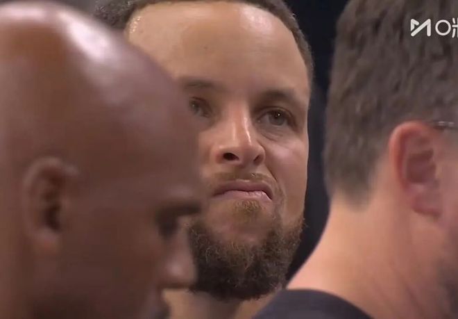 随后,库里类似的回合,却被吹进攻犯规